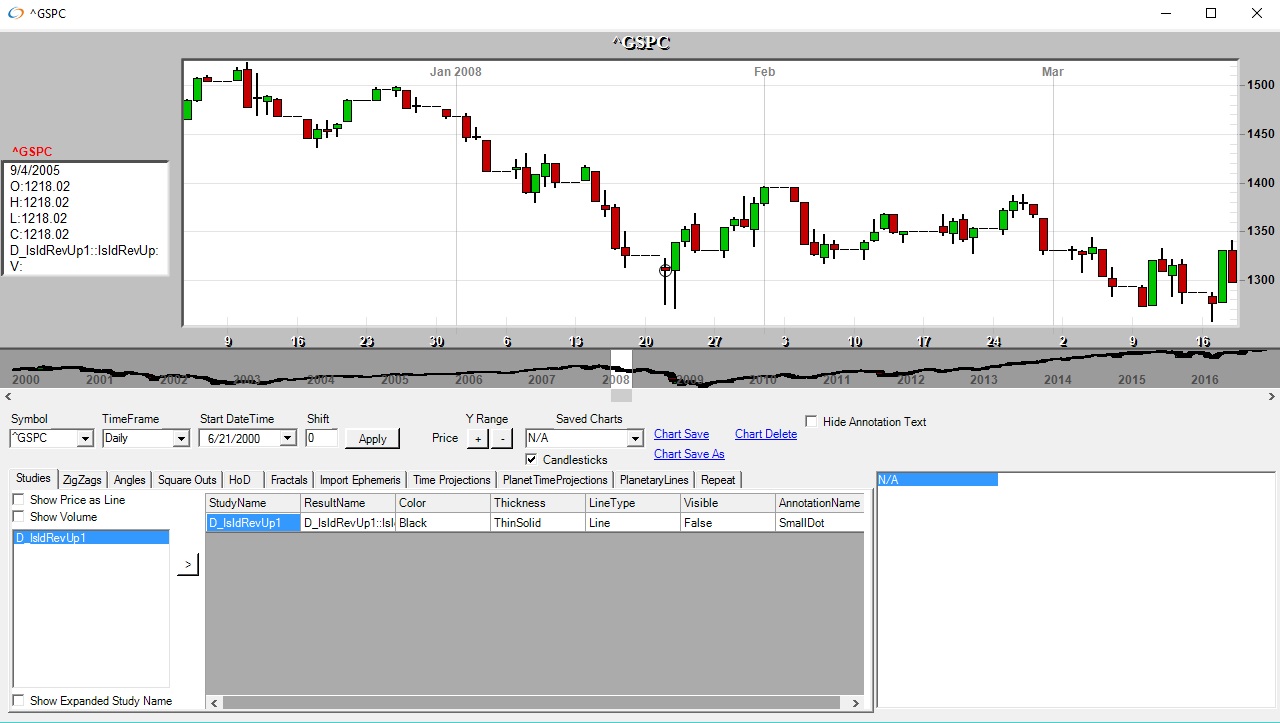 Above is a chart of the IslandReversalUp indicator on the daily timeframe. The bars with a circle annotation are the IslandReversalUp bars.