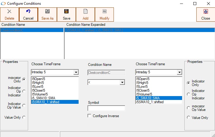 Offset is used to retrieve the previous bars of a moving indicator or bar. Use Offset indicator to retrieve previous values of indicators. Use 'Open', 'High','Low','Close', or 'Vol' indicators to retrieve previous values of the Open, High, Low, Close or Volume.