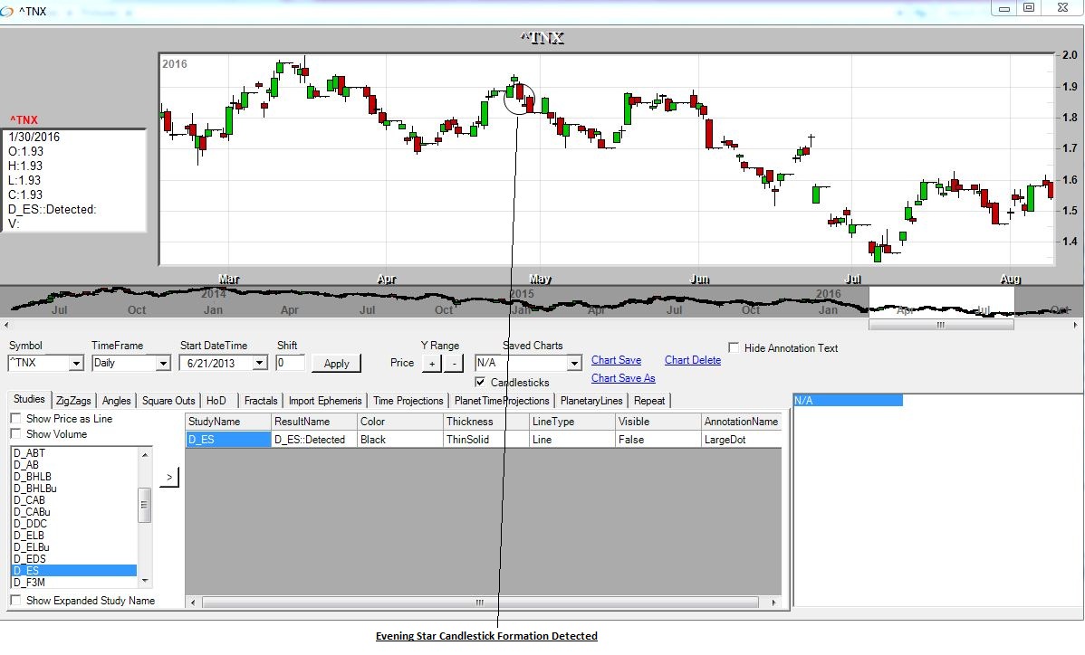 This formation is similar to the Evening Doji Star except that the middle candlestick is a small real body instead of a Doji.