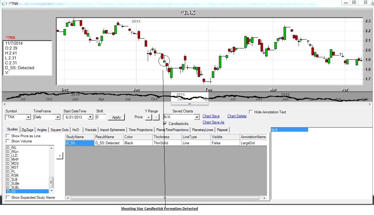 This candlestick is a small body with a long upper shadow and little or no lower shadow. When this appears in an uptrend it is bearish signal.
