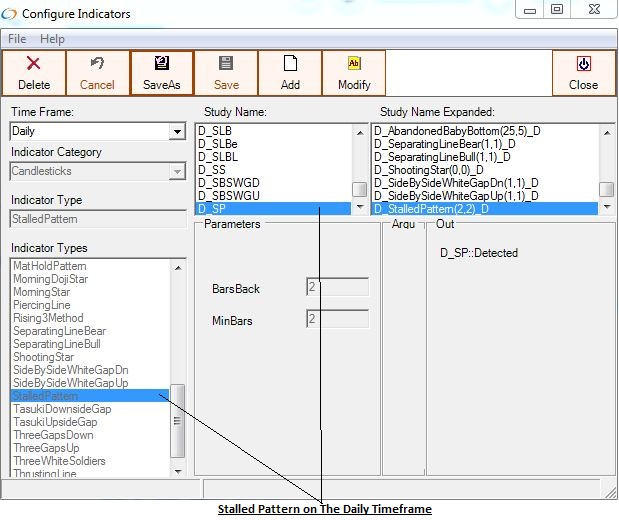 The value of MinBars will be one less than the number of bars in the candlestick formation.