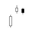 The first is a long white body, the second is a small white body and the third is a small black body. The middle small white body gaps up from the long white one. The small black body opens in the body of the small white one but then closes below the small black body. In an advancing market this is a bullish continuation pattern.