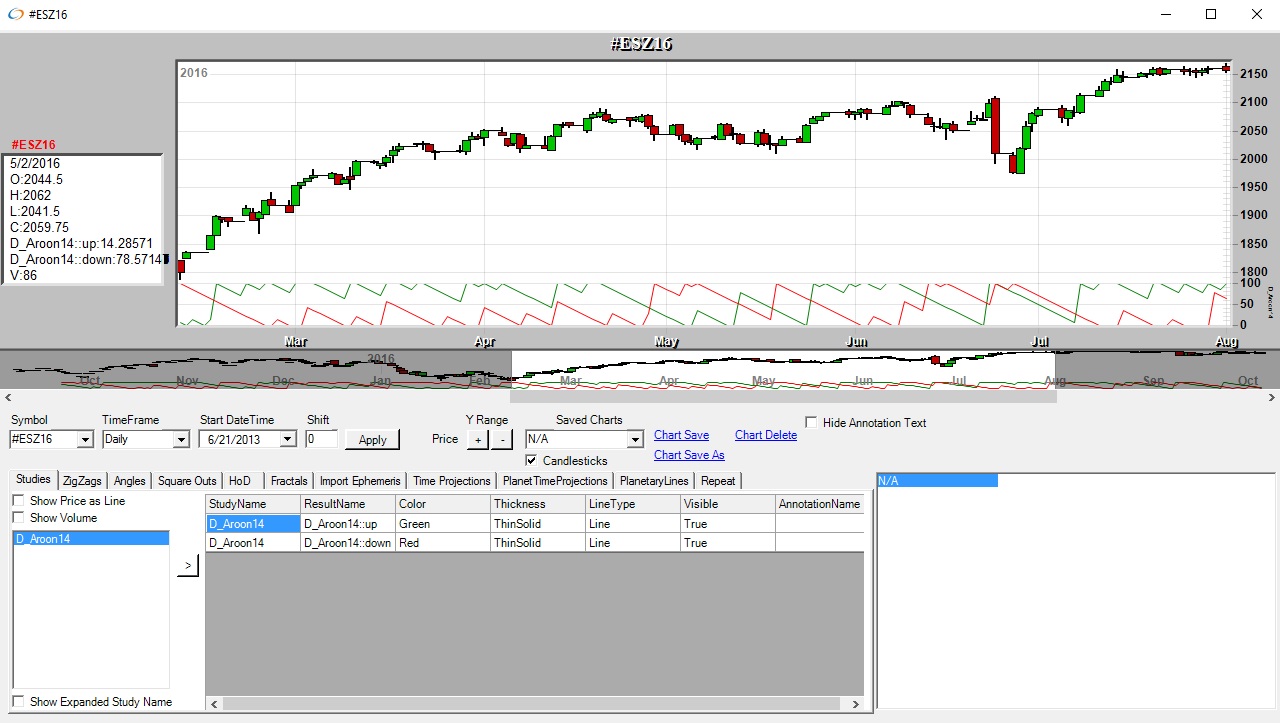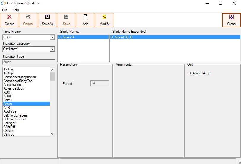 The Aroon indicator on the daily chart Timeframe, Period = 14