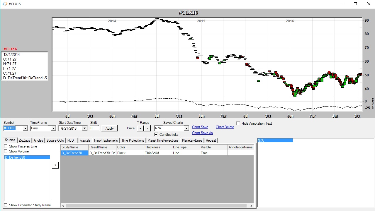 Detrend indicator displayed on crude Oil for the daily timeframe
