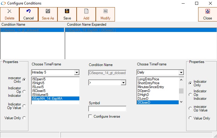 The Exponential Moving Average can be used in conditions