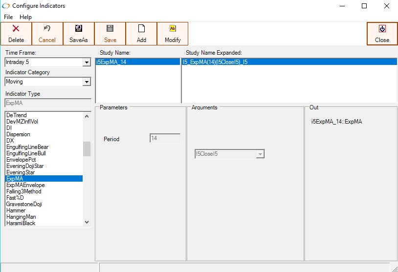 Configuring a 14 period Exponential Moving Average