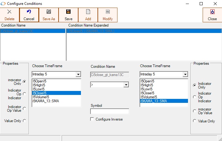 Kaufman Adapative Moving Average(KAMA) can be used in conditions
