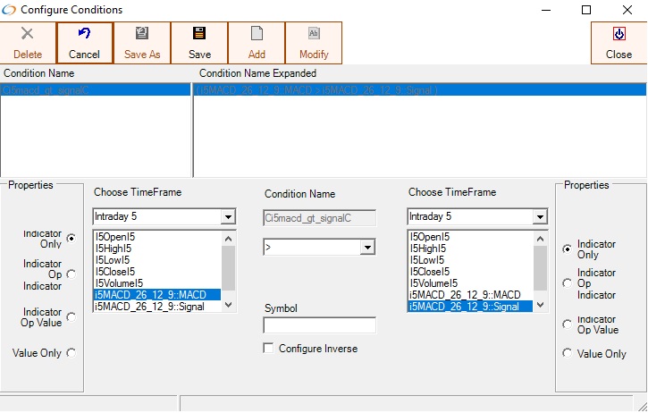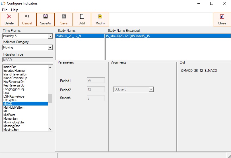 Configuring MACD Major period 26, minor peirod 12, and smoothing period of 9