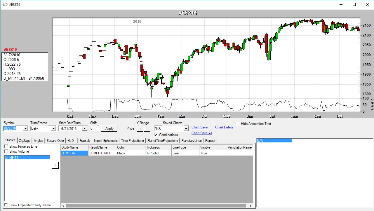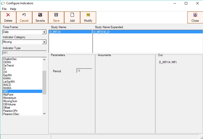 The Money Flow Index calculates the ratio of money flowing into and out of a security. To interpret the Money Flow Index, look for divergence with price to signal reversals. Money Flow Index values range from 0 to 100. Values above 80/below 20 indicate market tops/bottoms.