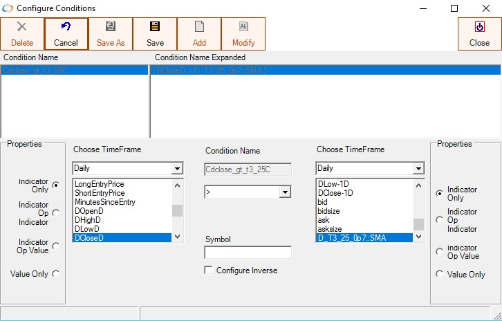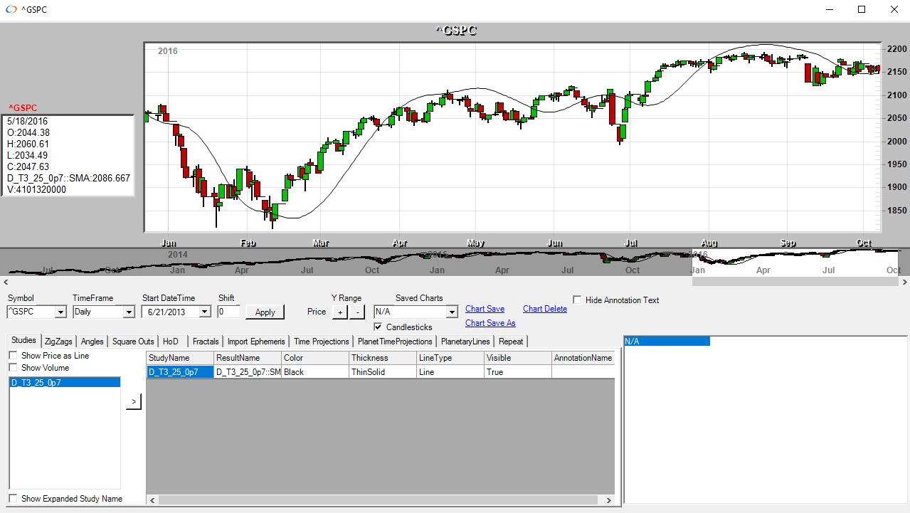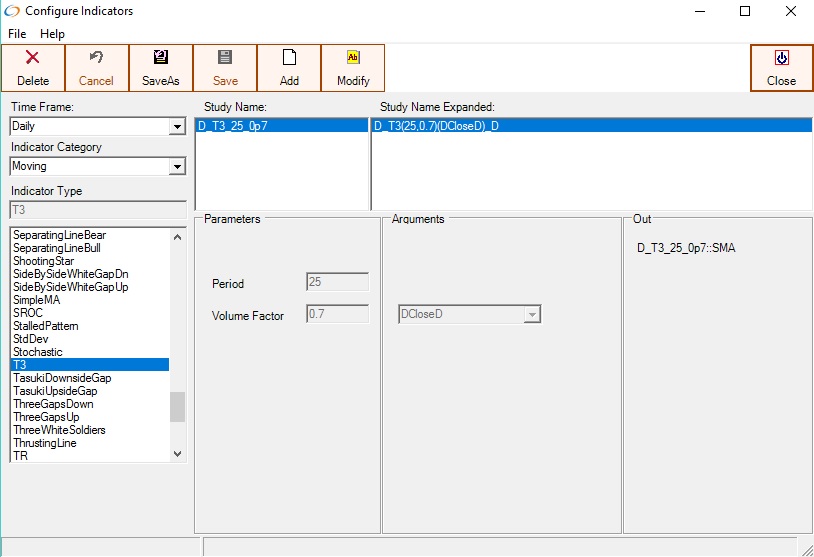 Configuring a T3 Moving Average with Period 25 and VolumeFactor 0.7