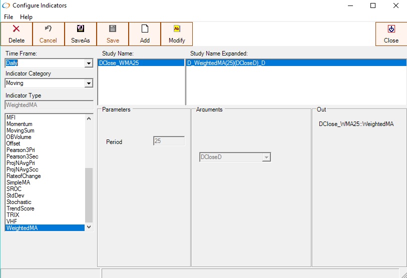 Configuring a 25 period Weighted Moving Average