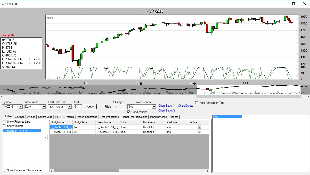 StochRSI on the Daily Timeframe, with a Period of 14,FastKPeriod of 5, FastDPeriod of 3
