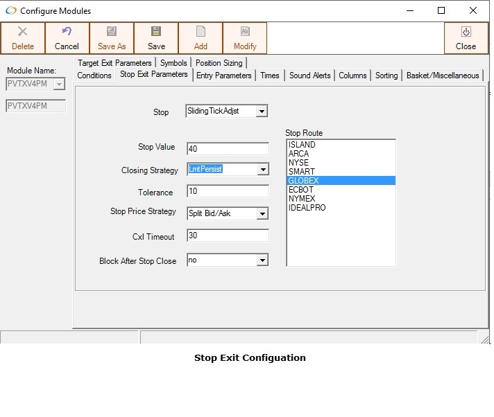 Stop Exit Orders are initiated from automated positions that meet the Stop Criteria.