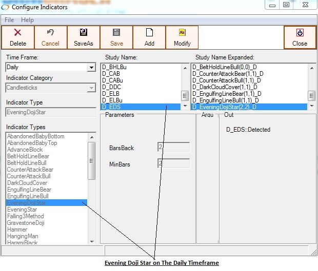 The value of MinBars will be one less than the number of bars in the candlestick formation.