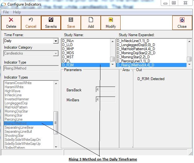 The value of MinBars will be one less than the number of bars in the candlestick formation.