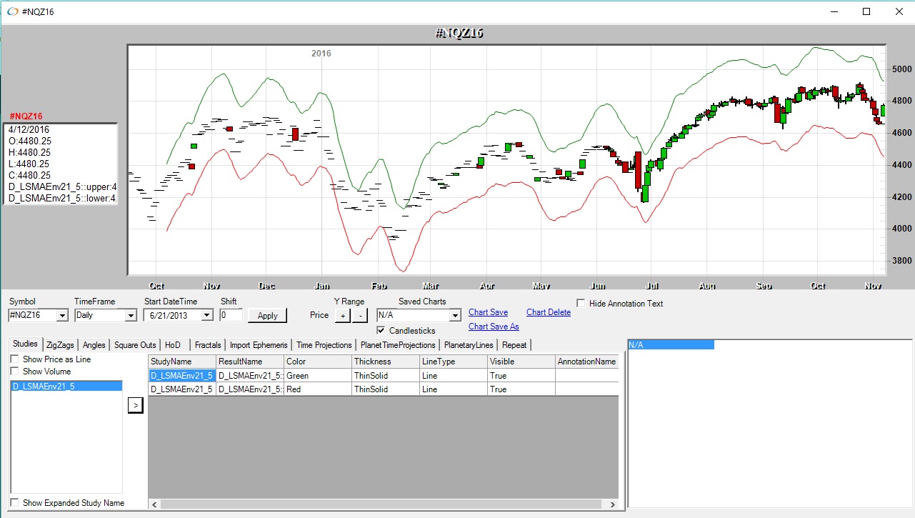 The LSMAEnvelope indicator with a period of 21 and a factor of 5% on the daily timeframe.