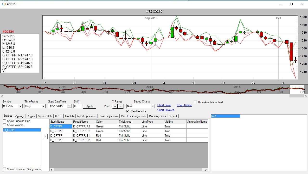 Above is a chart of the Chicago Floor Trader Pivot Points(CFTPP) indicator configured on the daily timeframe