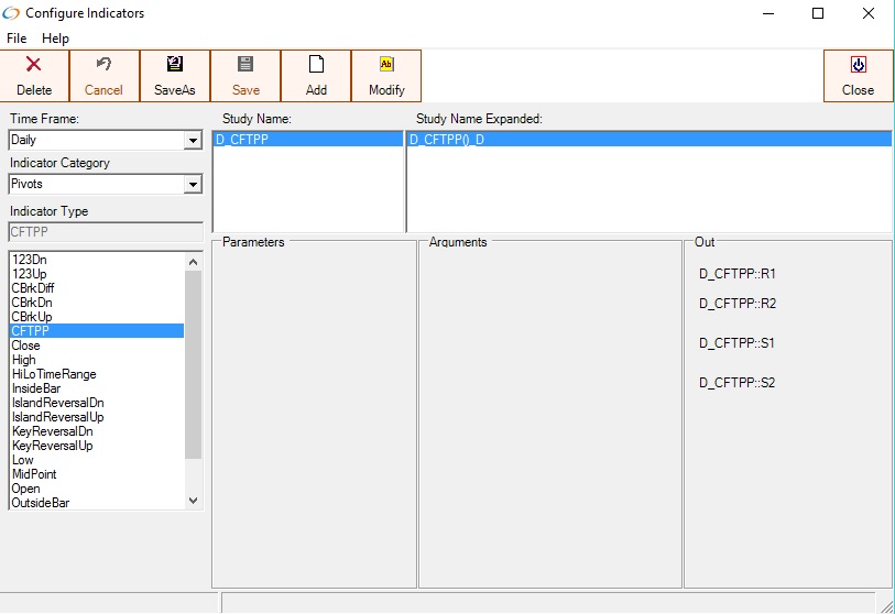 This indicator is used by floor traders on Chicago Mercantile Exchange to calculate short term support and resistence levels for commodities. It consists of two support an two resistance levels.