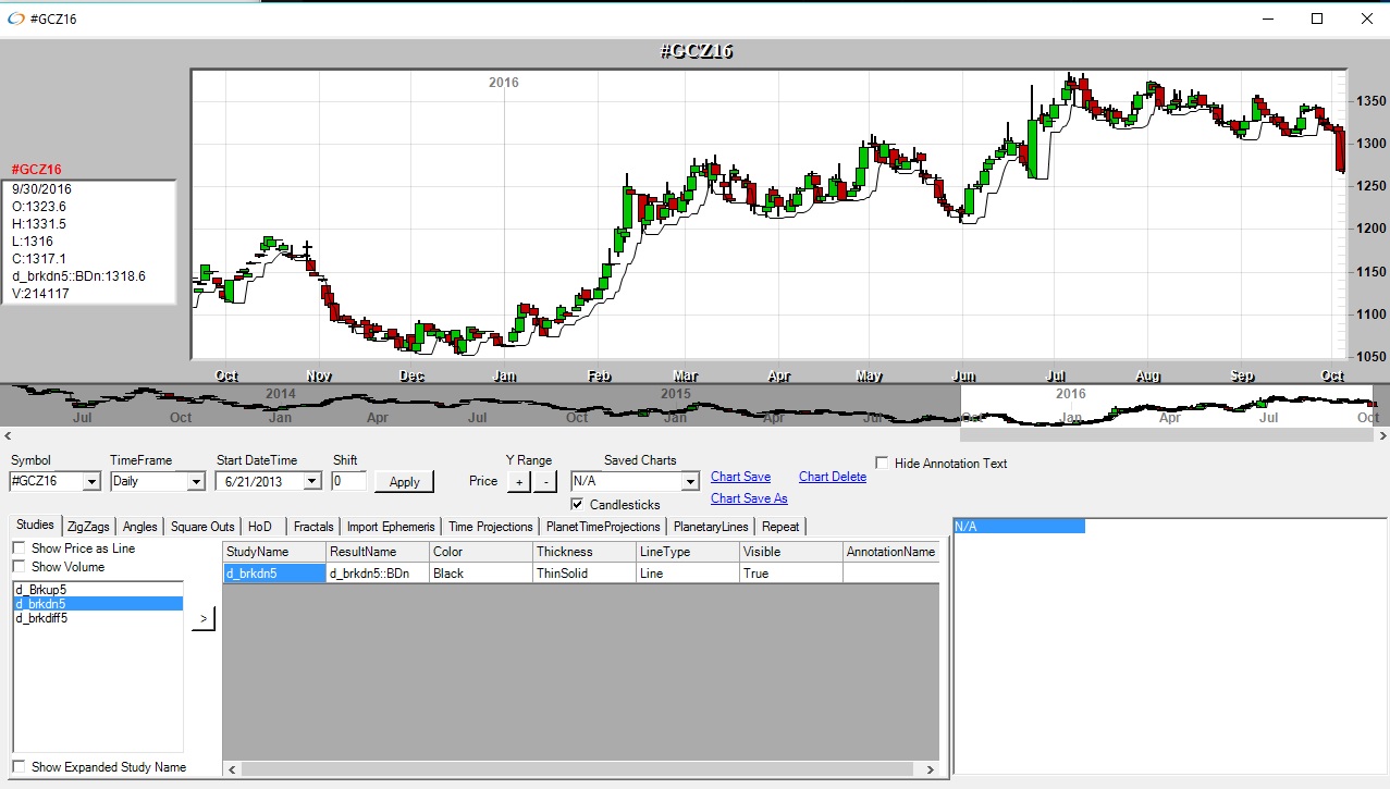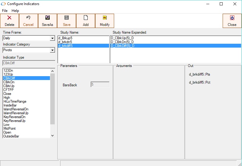 d_CBrkDn5 is configured to calculate the low of the previous 5 bars (barsback 5)