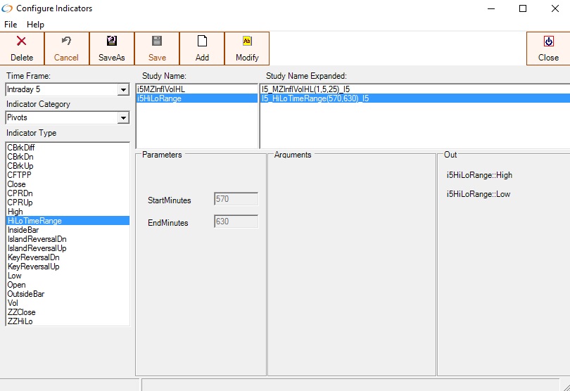 The HiLoTimeRange indicator finds the high/low of the time range specified by the user. For example the high/low of trading between 9:30 and 10:30 ET. This indicator is similar to the Predefined Daily Indicators which find the high/low of various time ranges, starting from the open of the instrument. For example 30MHigh is the high of the first 30 minutes since the , 30MLow is the low of the first 30 minutes since the open. HiLoTimeRange allows you to specify Highs/Lows of other time ranges. For example, it allows you to find the high/low of futures contracts between 9:30 and 10:30, the first hour of market open in the US.