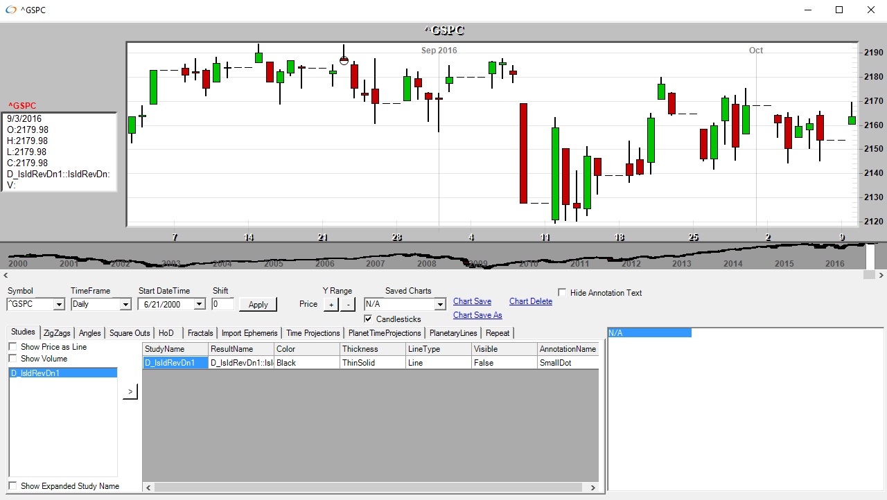 Above is a chart of the IslandReversalDn indicator on the daily timeframe. The bars with a circle annotation are the IslandReversalDn bars.