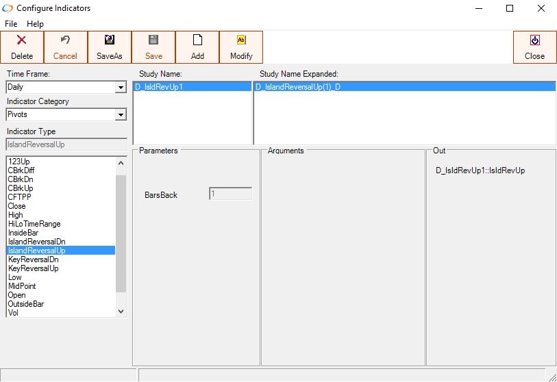An island reversal is a chart formation where there is a gap on both sides of the candle. Island reversals frequently show up after a trending move is in its final phase The IslandReversalUp indicator returns a 1 if it's found, 0 Otherwise.