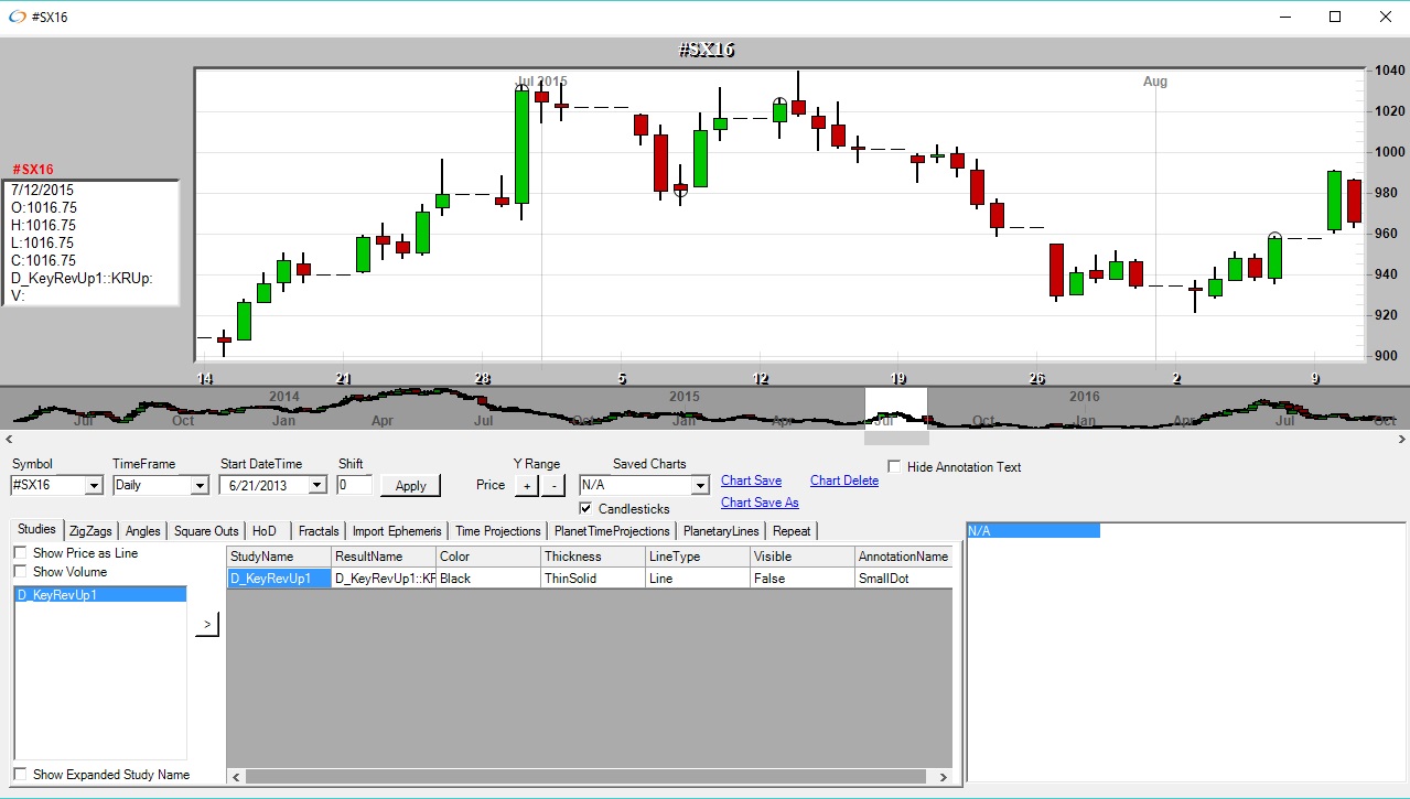 A Key Reversal Up occurs when Current Bar Low < prev Bar Low and Current Bar Close > Prev Bar Close. It returns a 1 if it's an KeyReversalUp Bar, 0 Otherwise.