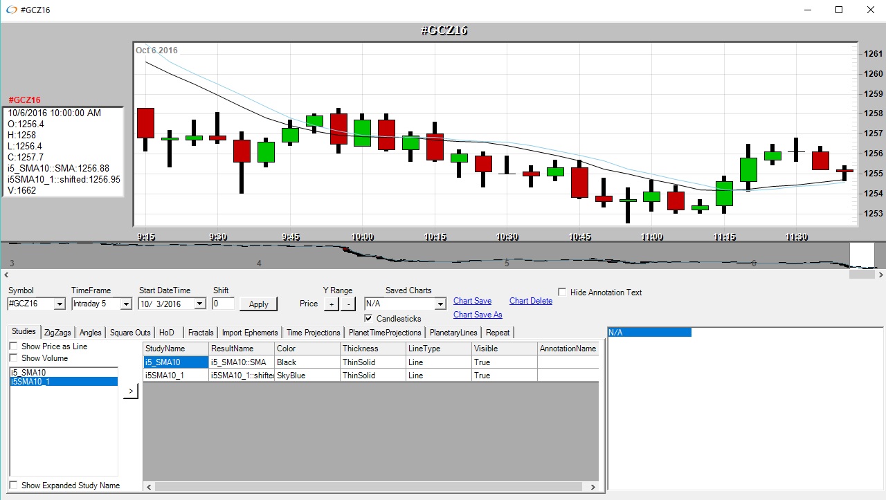 Above is a chart of the Offset Indicator. The blue line is the offset of the Simple Moving Average. The black line is the Simple Moving Average