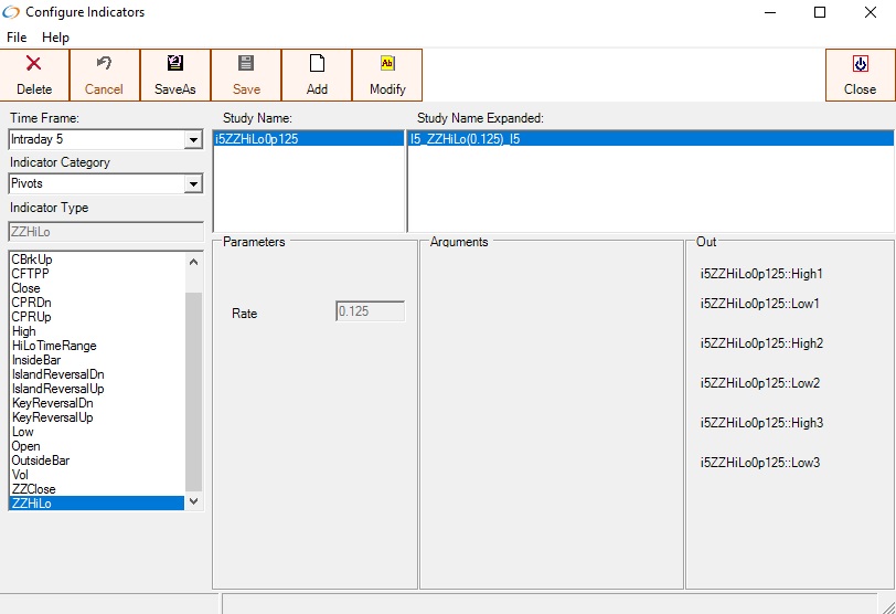 This shows a ZZHiLo indicator with a Rate of 0.125.  The 6 Output values are shown on the right side